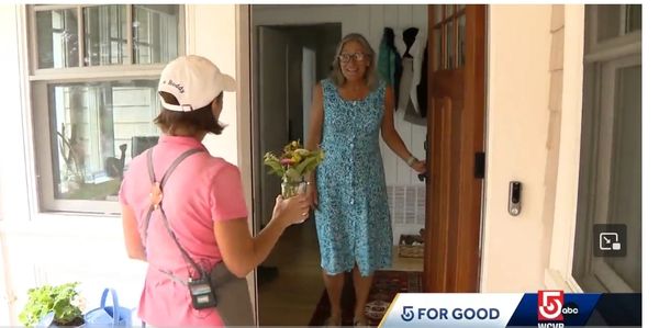 Each week, Leslie and Old Farm Rockport residents (brain-injury survivors), Flower Bud assistants and volunteers assemble simple posies and deliver them for free to unsuspecting recipients, many of whom are also suffering from isolation and loneliness.